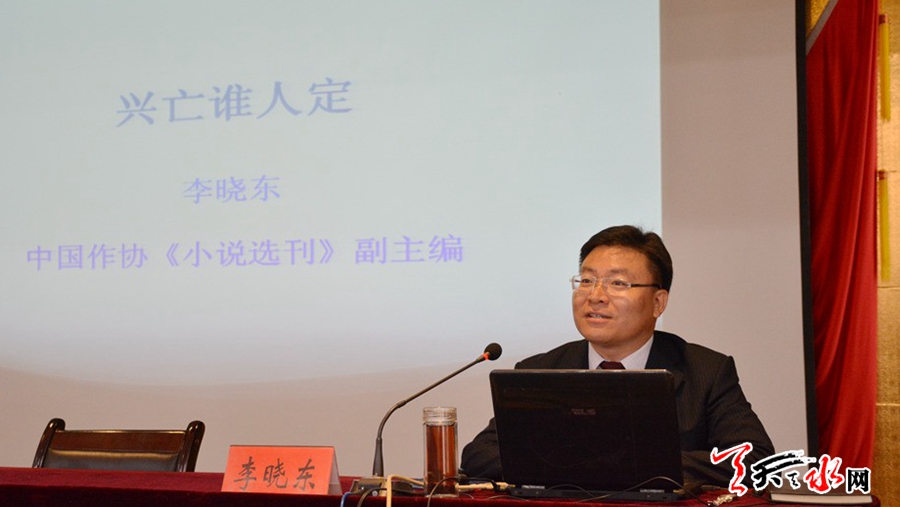 講座中,李曉東以“興亡誰人定”為主題,通過詳細(xì)解讀三國演義帶來的“性格決定命運(yùn)、智慧決定成敗、空隙決定機(jī)遇、天才決定盛衰、魅力決定實(shí)力、膽識決定得失、大勢決定興亡、輿論決定形象”等八個(gè)啟示,引用詩詞及古今中外學(xué)術(shù)界對《三國演義》的經(jīng)典論述,從演繹與史實(shí)的異同、曇花一現(xiàn)的袁紹集團(tuán)、曹魏帝國的興亡、坐斷東南之孫吳政權(quán)、力弱心強(qiáng)的蜀漢和兩晉與南北朝等方面,全方位對三國的時(shí)代變遷、歷史人物和故事情節(jié)進(jìn)行了深入淺出的講解,并以史為鑒闡明了三國智慧與決策科學(xué)的內(nèi)在聯(lián)系,贏得了聽眾的陣陣掌聲。同時(shí)他還指出,三國時(shí)期天水處于蜀魏交鋒前沿,諸葛亮六出祁山、馬謖痛失街亭、智收姜維、計(jì)殺張郃等重大戰(zhàn)事都發(fā)生在天水,街亭、天水關(guān)、木門道、諸葛軍壘等三國古戰(zhàn)場遺址,展示出三國文化在天水歷史上的厚重一頁。