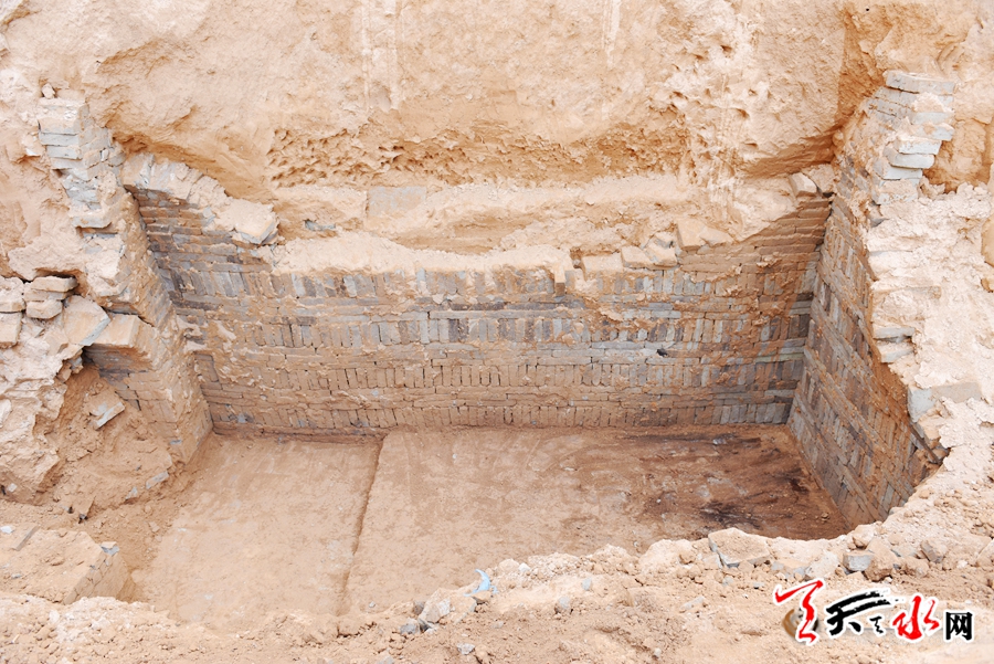 8月24日,市博物館接到秦州區(qū)文化局負(fù)責(zé)人上報(bào),在秦州區(qū)中梁鎮(zhèn)機(jī)場(chǎng)遷置房建設(shè)工地發(fā)現(xiàn)一座古代墓葬。隨后,博物館派文物考古研究所專業(yè)人員王太職、裴建隴、陳東東前去勘查并予以清理。