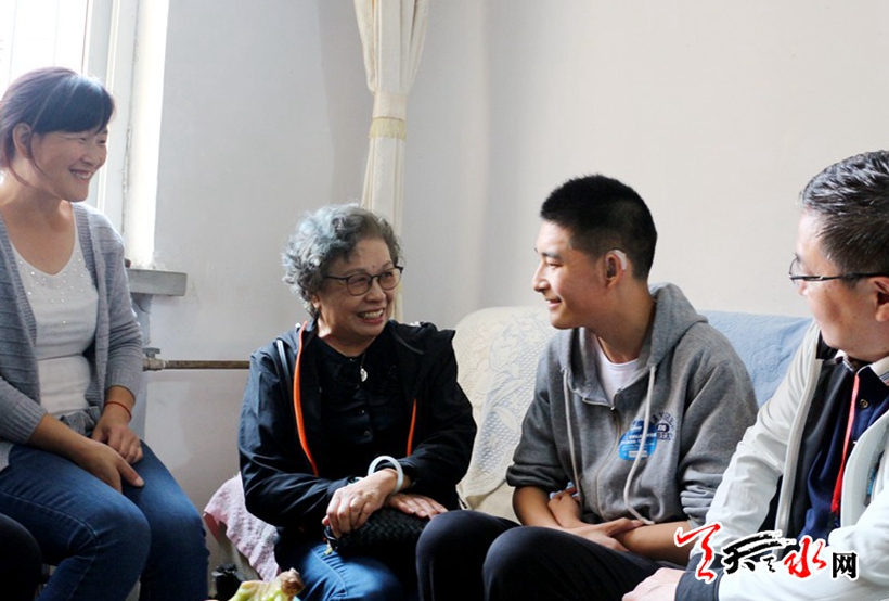 天天天水網(wǎng)訊【記者徐媛】9月24日,中國市長協(xié)會顧問、北京愛爾公益基金會創(chuàng)會會長陶斯亮帶領愛爾公益基金會工作人員來到麥積區(qū)花牛小區(qū)看望了市一中聽障學生朱慶鵬。