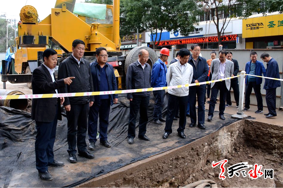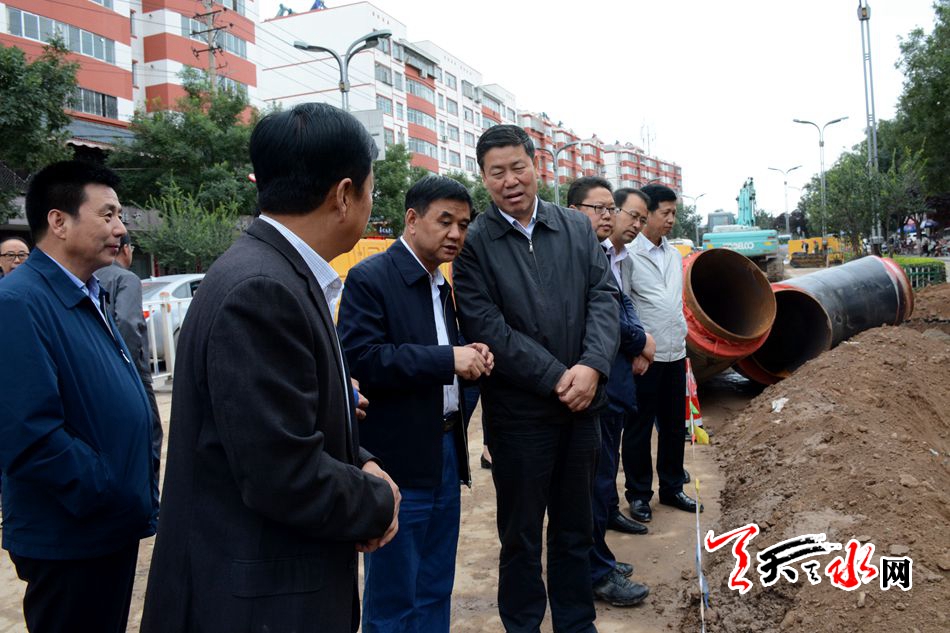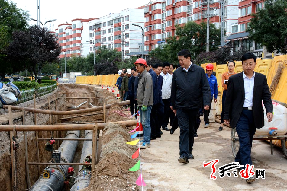 ???天天天水網(wǎng)訊【全媒體記者 王曉馨】 9月26日下午,市委副書記、市長(zhǎng)王軍帶領(lǐng)秦州區(qū)政府及市建設(shè)、財(cái)政、水務(wù)、環(huán)保、城鄉(xiāng)供水、交警支隊(duì)、供電等相關(guān)部門負(fù)責(zé)人,對(duì)我市城區(qū)集中供熱項(xiàng)目建設(shè)進(jìn)展情況進(jìn)行了督查。王軍強(qiáng)調(diào),各相關(guān)部門和施工單位要牢固樹(shù)立大局意識(shí),在保安全、抓質(zhì)量的前提下,抓緊推進(jìn)施工進(jìn)度,確保工程按期建成投入使用。