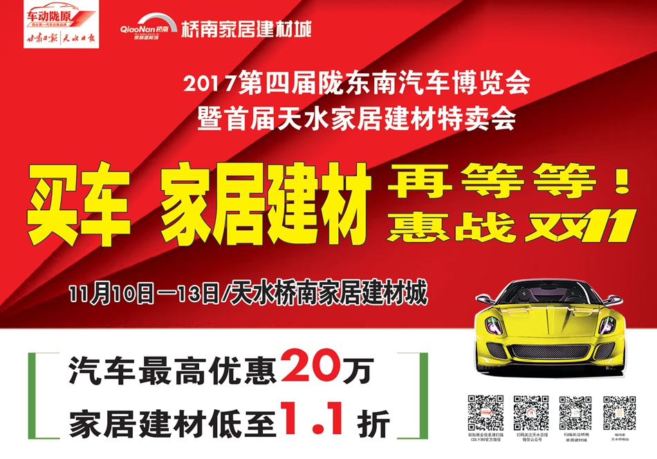 第四屆隴東南汽車博覽會暨首屆天水家居建材特賣會將于11月10日至13日在天水橋南家居建材城舉辦