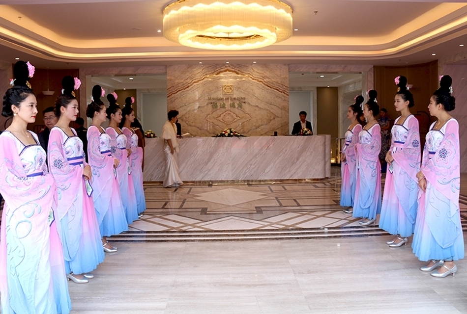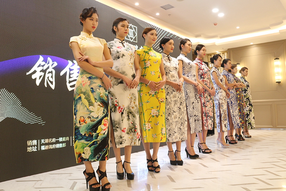 ▲傳統(tǒng)旗袍展示彰顯新中式豪宅典范