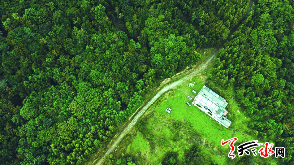 俯瞰秦家塬管護(hù)站,如坐落在莽莽林海中的一座孤島。