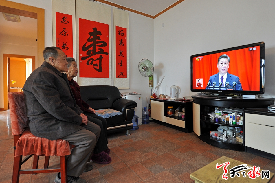 ???95歲高齡的天水市衛(wèi)生學(xué)校離休老干部王占洲和老伴,85歲高齡的天水市原物資局離休老干部賈杰,當(dāng)天上午在家中認(rèn)真收看中國(guó)共產(chǎn)黨第十九次全國(guó)代表大會(huì)開幕會(huì)直播,聆聽習(xí)近平代表十八屆中央委員會(huì)向大會(huì)作報(bào)告。王占洲老人1938年入黨,黨齡80年,賈杰老人上世紀(jì)七十年代入黨,兩位老人先從軍后工作,是繼承和發(fā)揚(yáng)著中國(guó)共產(chǎn)黨優(yōu)良傳統(tǒng)的老黨員。 記者??孫鎮(zhèn)??攝