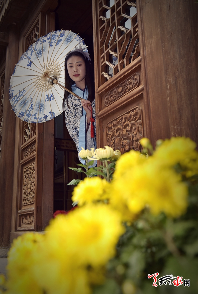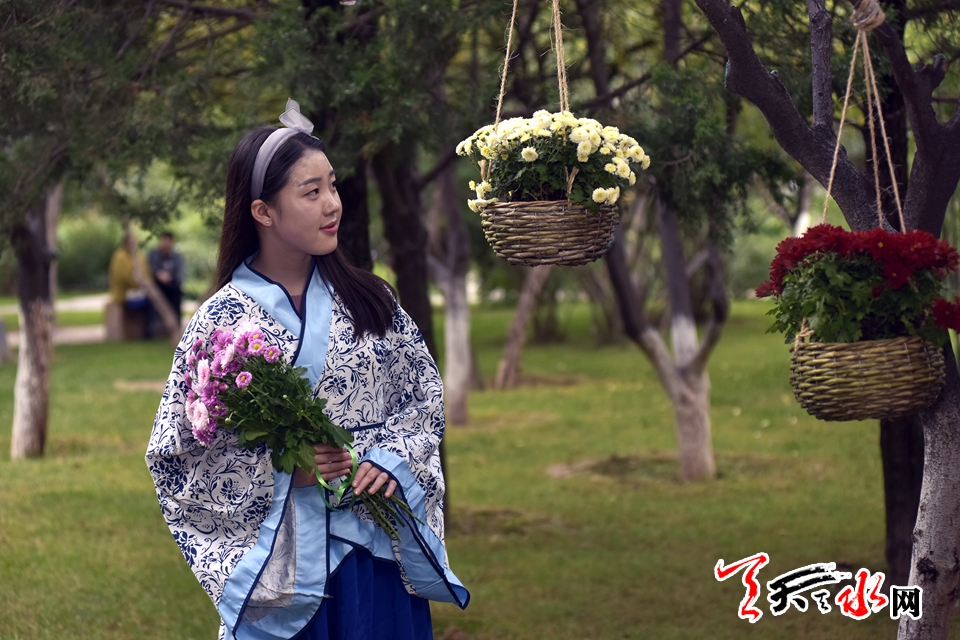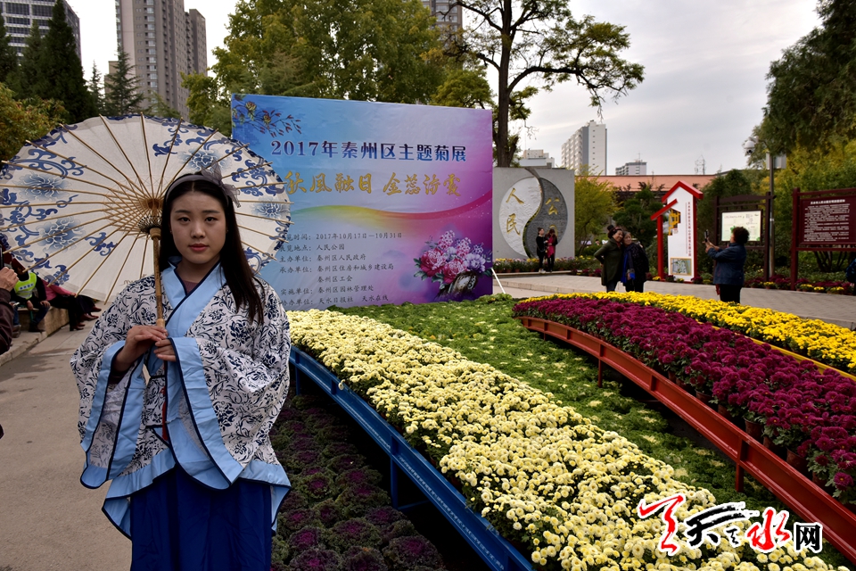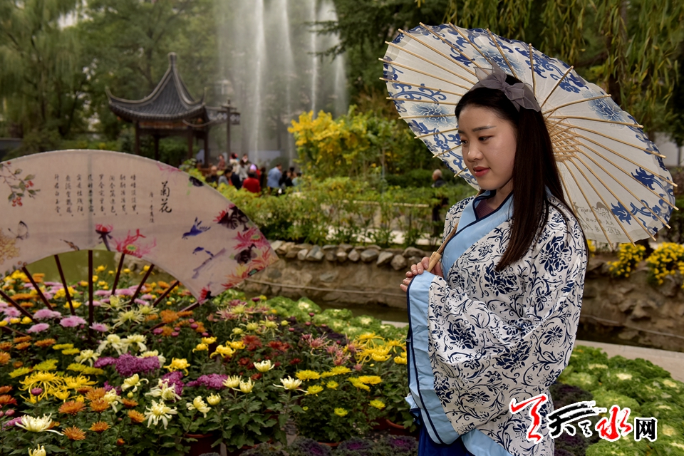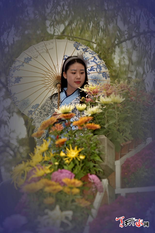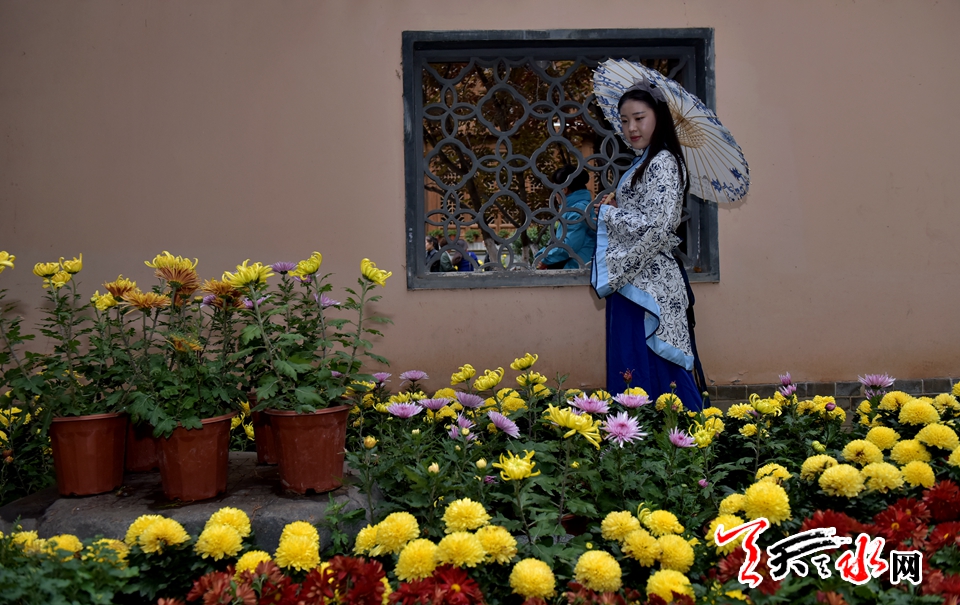 ????18日下午,人民公園里,賞客如織,川流不息,時有為一處拍照佳地排隊(duì)守候,或是快門按下的一瞬間,畫面里出現(xiàn)了“不速之客”,好不熱鬧。由恒順地產(chǎn)獨(dú)家贊助支持此次菊展,為增加此次菊展的文化品味和游園賞菊情趣,特別在展區(qū)內(nèi)增設(shè)了穿著漢服的模特,以渲染更加濃厚的文化氣息。