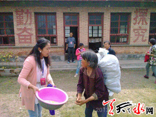 ????文艷同志業(yè)余時間熱衷于公益事業(yè),2012年3月5日加入奉獻愛心群(現在的天水市心連心愛心協(xié)會),并且擔任紀檢委員的職務。2013年5月,該同志捐贈出家里的舊課桌20余張,通過翻新處理,捐贈給秦州區(qū)楊家寺鄉(xiāng)小學。2013年6月當得知太京鎮(zhèn)唐家窯小學的孩子們生活困難,文具、體育器材、課外圖書嚴重缺乏,文艷同志馬上組織班上的孩子和家長一起為唐家窯小學的師生獻愛心,她邀請家長代表,學生代表,隨著志愿者一起把這些充滿愛意的文具送到了唐家窯小學的孩子們手中。除了進行捐贈活動,她收集整理了安全教育小常識打印出來,和志愿者們一起進入課堂給孩子們普及用電、交通、防溺水等知識,讓孩子們懂得自我保護,注意自身安全。2012年至今累計參與幫扶這樣的山區(qū)貧困小學7所。麥積區(qū)能干村的王順夫老兩口,老人勤勞善良,年輕時收養(yǎng)了殘智障孩子四人,隨著年事增高,疾病纏身,老兩口其中一人行走不便,單手拄拐,一人長期臥床,幾乎失去行走能力?,F在家里只剩下一個智障的兒子,患有癲癇病,不定期發(fā)病,一家人的生活需要人照顧,得知這一情況后,2016年至2017年,文艷同志多次來到老人家中慰問關心,2017年1月給老人過年置辦年貨,送去米、面、油、雞蛋、蔬菜等生活物資,6月給兩位老人一人買了一套夏季新衣服和收集的舊衣物若干,把床上的破舊床單、枕巾、枕套全部換成新的,親手給老人掛好門簾,釘好紗窗,定為長期幫扶對象,參與幫扶這樣的貧困家庭共計22個。