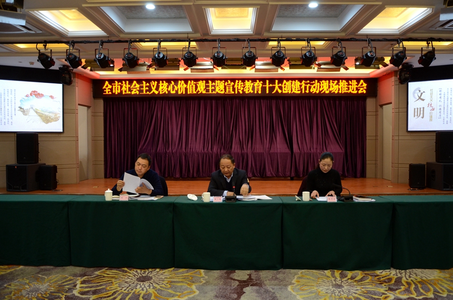 天天天水網(wǎng)訊【記者童強】10月25日,在黨的十九大勝利閉幕之際,全市社會主義核心價值觀主題宣傳教育十大創(chuàng)建行動現(xiàn)場會在麥積區(qū)召開,學(xué)習(xí)宣傳黨的十九大精神,認真貫徹落實全省社會主義核心價值觀主題宣傳教育十大創(chuàng)建行動現(xiàn)場會議精神,安排部署我市持續(xù)開展社會主義核心價值觀主題宣傳教育十大創(chuàng)建行動,推動全市社會主義核心價值觀觀培育實踐工作不斷向廣度和深度拓展。