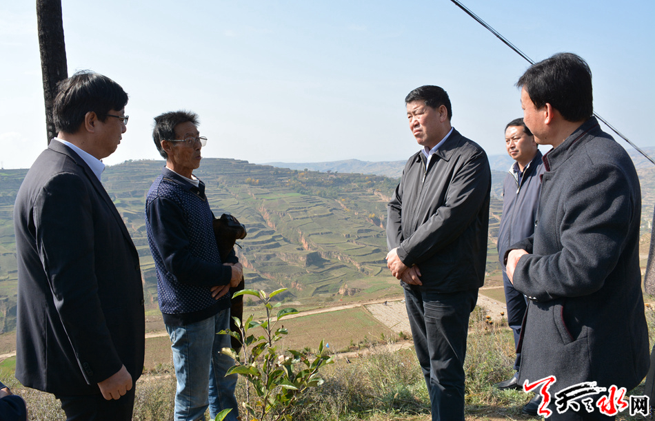 ???? ?天天天水網(wǎng)訊【全媒體記者吳麗娜】10月26日,市委副書記、市長(zhǎng)王軍帶領(lǐng)市委農(nóng)工部、市發(fā)改、建設(shè)、扶貧辦、市政府研究室等部門負(fù)責(zé)人,對(duì)秦安縣今年以來(lái)經(jīng)濟(jì)社會(huì)發(fā)展情況和脫貧攻堅(jiān)工作進(jìn)行調(diào)研。王軍強(qiáng)調(diào),全縣上下要認(rèn)真學(xué)習(xí)貫徹落實(shí)黨的十九大精神,鼓足干勁,以良好的精神狀態(tài)和務(wù)實(shí)的工作作風(fēng),全力抓實(shí)脫貧攻堅(jiān)工作,堅(jiān)持推進(jìn)重點(diǎn)項(xiàng)目,持續(xù)做大做強(qiáng)做優(yōu)林果產(chǎn)業(yè),推動(dòng)秦安經(jīng)濟(jì)社會(huì)發(fā)展各項(xiàng)事業(yè)取得新突破。