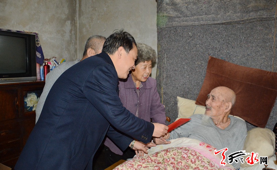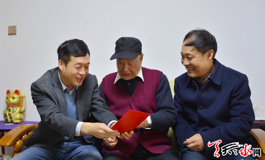 天天天水網(wǎng)訊【記者閆波】10月28日,我市組織開展2017年慶?!袄夏旯?jié)”活動。市政協(xié)副主席郭明興帶領(lǐng)相關(guān)部門負責(zé)人,為我市部分老年人送去了節(jié)日的祝福和問候。