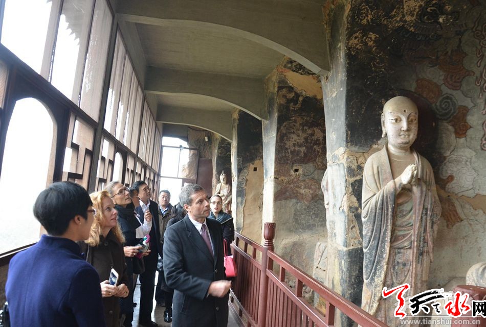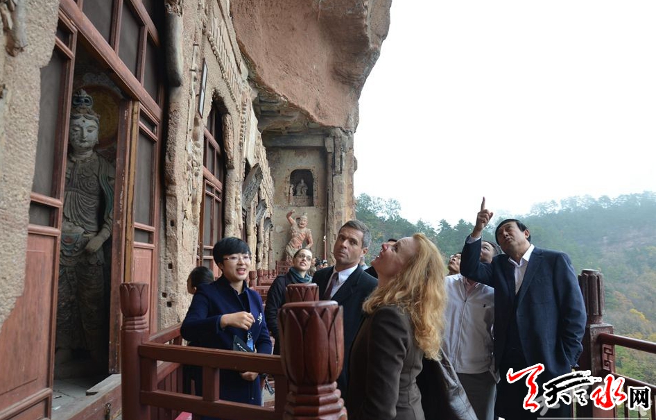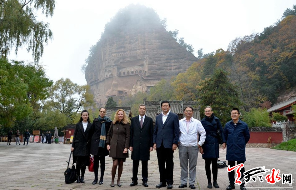 ????考察中,柯慕賢一行來(lái)到麥積山石窟等地,詳細(xì)聽取了工作人員對(duì)麥積山石窟文化的講解。趙衛(wèi)東還詳細(xì)介紹了我市經(jīng)濟(jì)社會(huì)、產(chǎn)業(yè)發(fā)展和宗教信仰等情況。趙衛(wèi)東說(shuō),中德兩國(guó)是全方位戰(zhàn)略伙伴關(guān)系,各領(lǐng)域交流合作持續(xù)擴(kuò)大。希望通過(guò)大使對(duì)天水的訪問(wèn)考察,進(jìn)一步加深對(duì)天水的了解,積極向德國(guó)推介、宣傳天水深厚的歷史文化底蘊(yùn),同時(shí)希望雙方加強(qiáng)文化、旅游產(chǎn)業(yè)等方面的互動(dòng)交流,促進(jìn)更多的德國(guó)企業(yè)家來(lái)參觀考察、投資興業(yè),天水將創(chuàng)造良好的投資環(huán)境和條件,提供優(yōu)質(zhì)高效的服務(wù),推動(dòng)雙方實(shí)現(xiàn)互惠共贏。