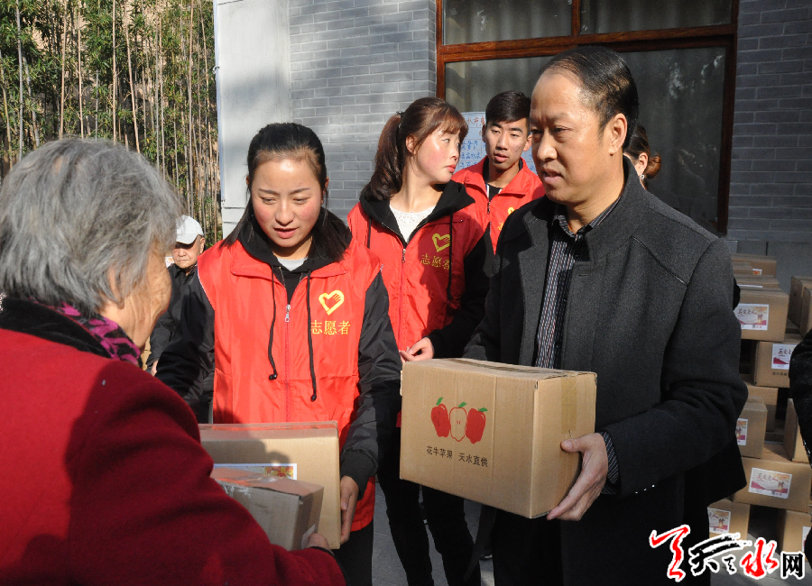 ??????? 天天天水網訊(記者 劉曉亞)11月3日,“關愛老人我們在行動”社會公益活動“金秋送果”在天水市虛擬養(yǎng)老院舉行,6000斤愛心蘋果讓天水市虛擬養(yǎng)老院老人感知到了社會的溫暖和關愛。