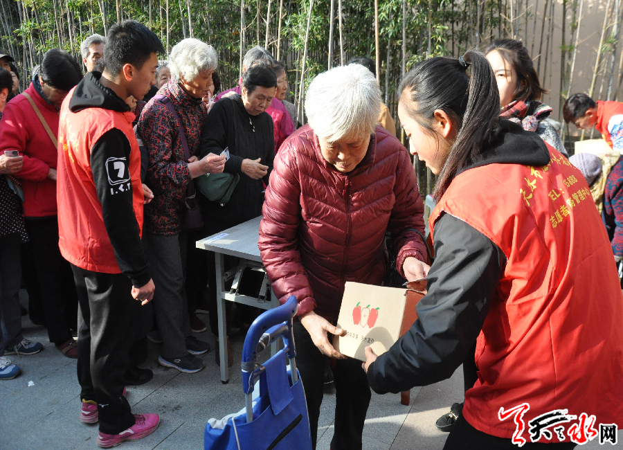 ?????? ?據了解,此次愛心活動由天水市民政局、天水市虛擬養(yǎng)老院主辦,甘肅永強建設集團、甘肅德豐農業(yè)有限公司、甘肅商幫電子商務有限公司發(fā)起的?;顒訛樘焖刑摂M養(yǎng)老院的老人免費發(fā)放了1000箱共計6000斤愛心蘋果。整個現場人潮涌動,老人們喜笑顏開,氣氛熱烈,活動現場這股強大的暖流溫熱了這個寒秋。