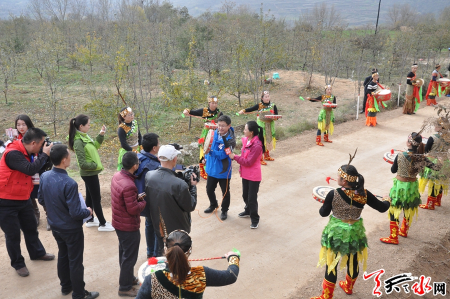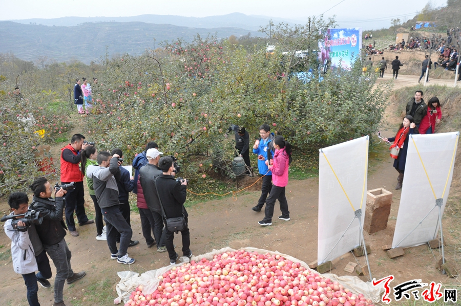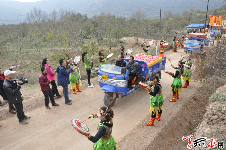 ????直播現(xiàn)場(chǎng)選在遠(yuǎn)門鎮(zhèn)夜明村的蘋果園里,當(dāng)天上午的直播在鏗鏘渾厚的軒轅鼓舞聲中拉開帷幕,摘蘋果比賽、清水小曲、有獎(jiǎng)問答、秦腔演唱、木人摔跤和為本次活動(dòng)專門編排的快板《夸蘋果》等節(jié)目全部選用清水當(dāng)?shù)匚乃嚾藛T和夜明村果農(nóng),精彩紛呈的一系列節(jié)目,將網(wǎng)絡(luò)直播接地氣的平民優(yōu)勢(shì),發(fā)揮的淋漓盡致。