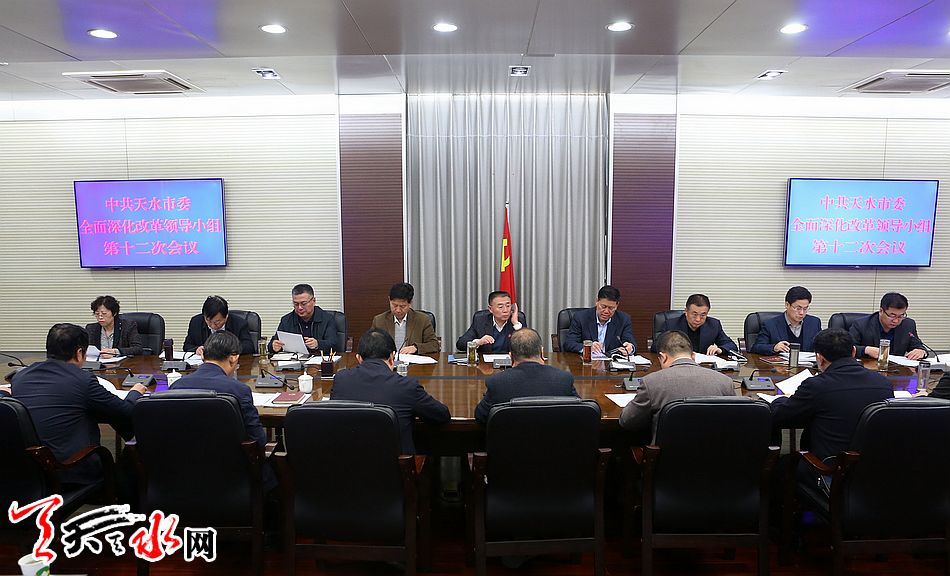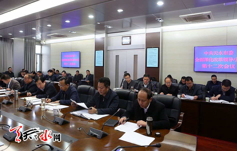 ????天天天水網(wǎng)訊【全媒體記者王曉馨】11月9日上午,市委書記、市委全面深化改革領(lǐng)導(dǎo)小組組長王銳主持召開市委全面深化改革領(lǐng)導(dǎo)小組第12次會(huì)議。王銳強(qiáng)調(diào),全市各級(jí)各部門要深入學(xué)習(xí)貫徹黨的十九大精神,始終堅(jiān)持以習(xí)近平新時(shí)代中國特色社會(huì)主義思想為指導(dǎo),增強(qiáng)改革勇氣,靠實(shí)改革責(zé)任,站在更高起點(diǎn)謀劃和推進(jìn)改革,努力開創(chuàng)全面深化改革工作新局面。