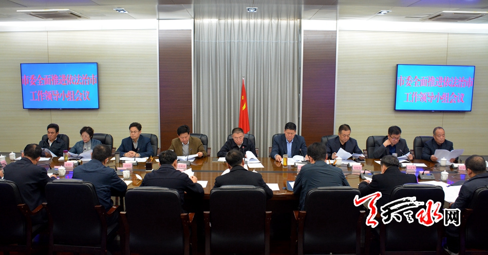 ????天天天水網(wǎng)訊【全媒體記者王曉馨】11月9日,市委召開全面推進(jìn)依法治市工作領(lǐng)導(dǎo)小組會議,學(xué)習(xí)貫徹黨的十九大精神,研究部署當(dāng)前和今后一個(gè)時(shí)期依法治市工作。市委書記、市委全面推進(jìn)依法治市工作領(lǐng)導(dǎo)小組組長王銳強(qiáng)調(diào),要深入學(xué)習(xí)貫徹黨的十九大精神和習(xí)近平新時(shí)代中國特色社會主義思想,準(zhǔn)確把握依法治國新的戰(zhàn)略定位,凝心聚力加快法治天水建設(shè)進(jìn)程,為全市改革發(fā)展穩(wěn)定提供有力法治保障。