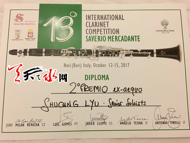 ????此次,呂樹清又奪得了國際單簧管比賽二等獎,是中國選手歷史上在世界單簧管比賽中取得的最好成績,在向全世界展示了中國水平的同時,也成為了天水人民的驕傲。