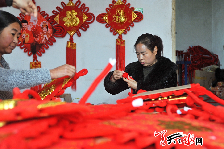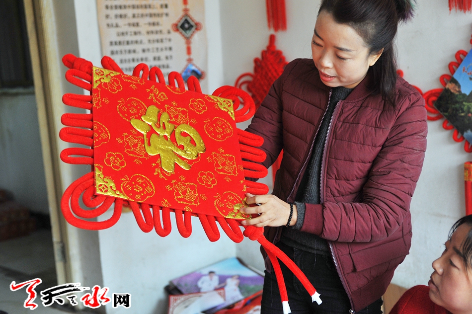 ????2015年,中國結(jié)成就了史瑞榮第二次創(chuàng)業(yè),她當(dāng)時(shí)了解到天水還沒有人編織中國結(jié),零售店均是從浙江義烏進(jìn)貨。史瑞榮想,如果辦一個(gè)中國結(jié)編織作坊,既讓家鄉(xiāng)農(nóng)村賦閑在家的婦女有一份收入,又能實(shí)現(xiàn)自己的創(chuàng)業(yè)夢想。