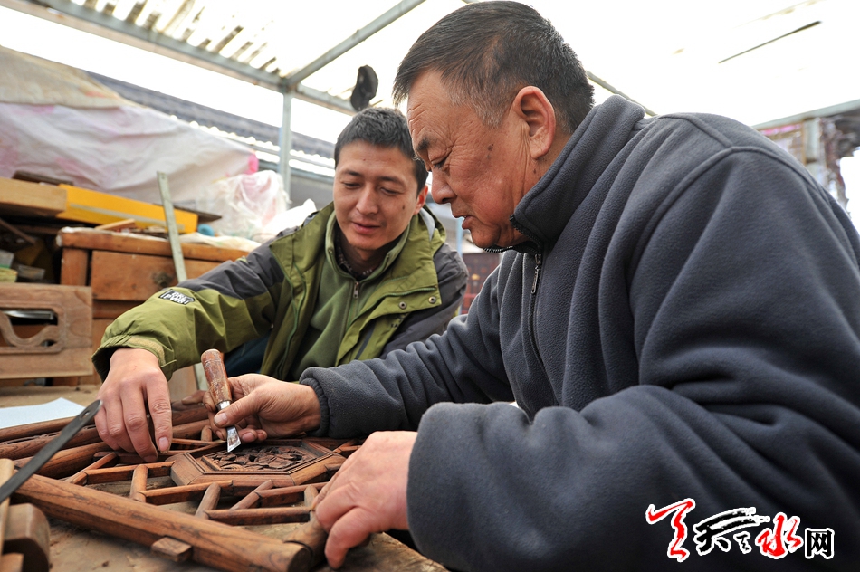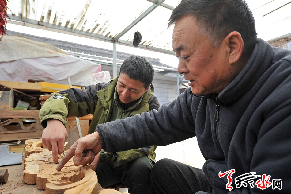 張貴福教兒子張治中學(xué)習(xí)雕花