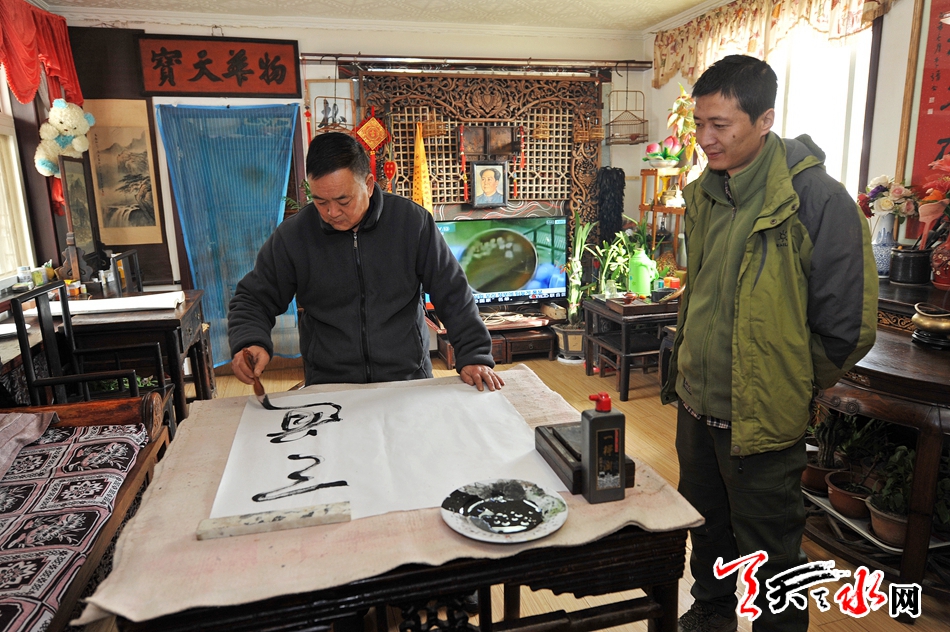 閑暇時(shí),張貴福會(huì)練練書法。