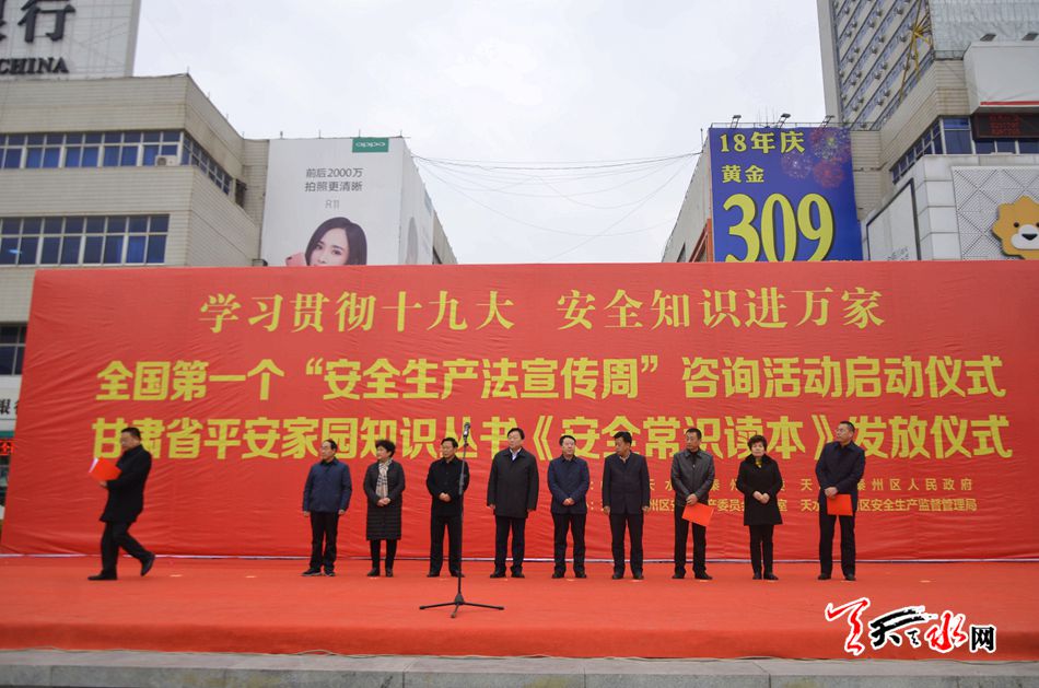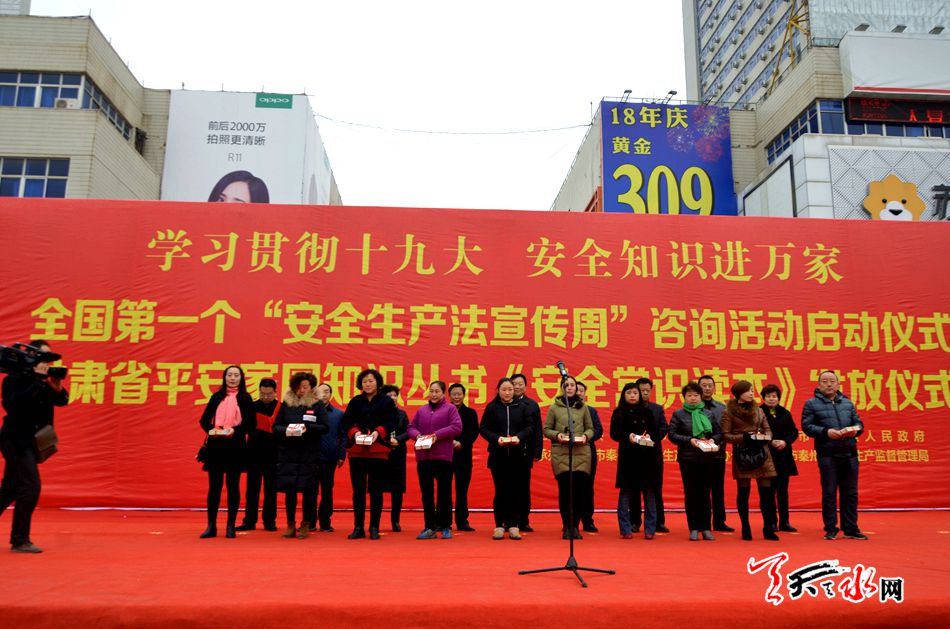 天天天水網(wǎng)訊【記者 張文都】12月1日,秦州區(qū)在市龍城廣場(chǎng)啟動(dòng)全國(guó)第一個(gè)“安全生產(chǎn)法宣傳周”咨詢活動(dòng)暨甘肅省平安家園知識(shí)叢書《安全常識(shí)讀本》發(fā)放儀式。