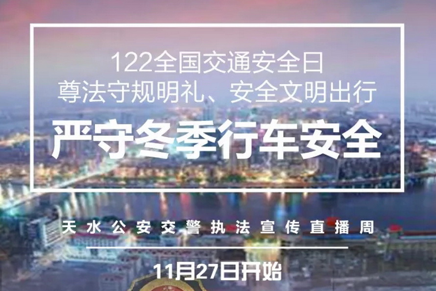????天天天水網(wǎng)訊 今年12月2日是第6個(gè)“全國交通安全日”,為創(chuàng)新宣傳形式、豐富宣傳內(nèi)容、提升宣傳效果,自11月27日起至12月2日,天水市公安局交警支隊(duì)組織全市公安交警部門開展了以“尊法守規(guī)明禮、安全文明出行”為主題的執(zhí)法宣傳直播周活動(dòng),為今年冬季交通事故預(yù)防及明年春運(yùn)交通安全工作營造了良好的宣傳氛圍。