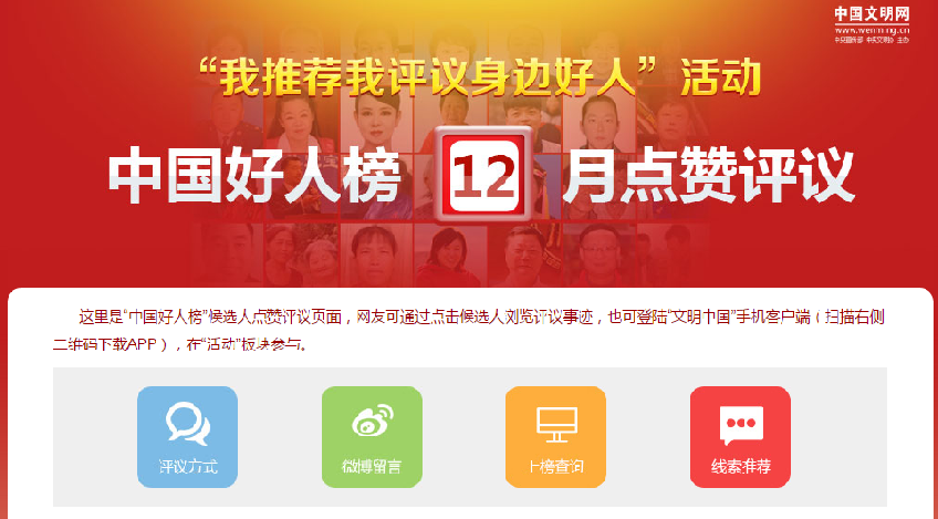 天天天水網(wǎng)訊 由中央文明辦主辦、中國(guó)文明網(wǎng)承辦的“我推薦我評(píng)議身邊好人”活動(dòng)中,天水2人入圍2017年12月“中國(guó)好人榜”助人為樂(lè)類候選人名單,分別為全國(guó)無(wú)償獻(xiàn)血奉獻(xiàn)獎(jiǎng)金獎(jiǎng)獲得者保得元(2號(hào)候選人)和天水師范學(xué)院教師漆愛(ài)紅(42號(hào)候選人)。中國(guó)文明網(wǎng)將對(duì)候選人進(jìn)行為期一個(gè)月的集中宣傳展示,廣大市民可登錄中國(guó)文明網(wǎng)“中國(guó)好人榜”活動(dòng)專題頁(yè)面,為兩位“天水好人”點(diǎn)贊評(píng)議。投票網(wǎng)址:(http://aaq.wenming.cn/seniorset/data/4f87fb3a2e39a946288c68d15c63f7f6/indexTz.html?str=20171213103159)。