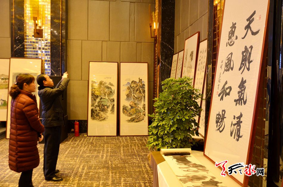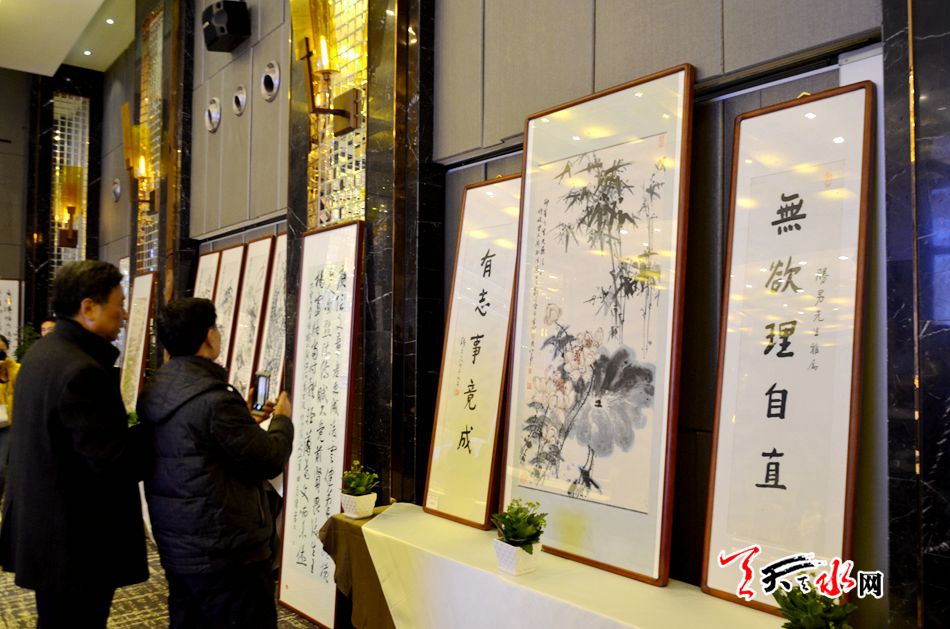 ????天天天水網(wǎng)訊【記者 張文都】因文化而相約,因藝術(shù)而傳情。12月16日,全國當(dāng)代名家書畫藏品精品展暨“魯藝之路、黃土畫派延安基地、延安國畫院走進天水”采風(fēng)活動在甘肅皇城國際飯店隆重開幕。來自國內(nèi)的知名書畫家相聚一堂,共同見證一次文化盛會的魅力綻放。