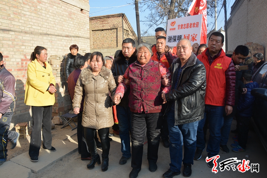 謝保明出站后,分別近40載的兄弟三人抱頭痛哭。在志愿者的祝福聲中,謝保明兄弟三人坐上了志愿者專門為他們準(zhǔn)備的車輛,前往甘谷縣與母親相認(rèn)。