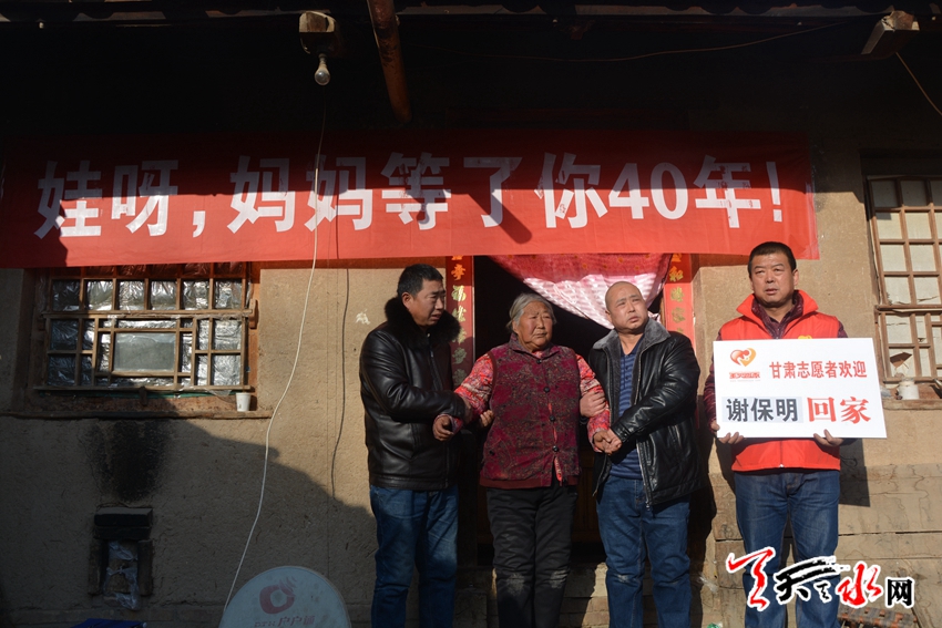 下午15時(shí)許,甘谷縣新興鎮(zhèn)頡家莊村鞭炮聲陣陣,鄉(xiāng)親們將謝保明家的老院子圍了個里三層外三層。見到母親,謝保明“撲通”一聲跪在地上,哭著說道:“媽媽,兒子回來了?!?7歲的劉板娃早已泣不成聲,緊緊攥著謝保明的手說:“找到你,我死就能閉上眼睛了,你爸爸沒等住你,他就是急得哭死了?。 ?/p>
