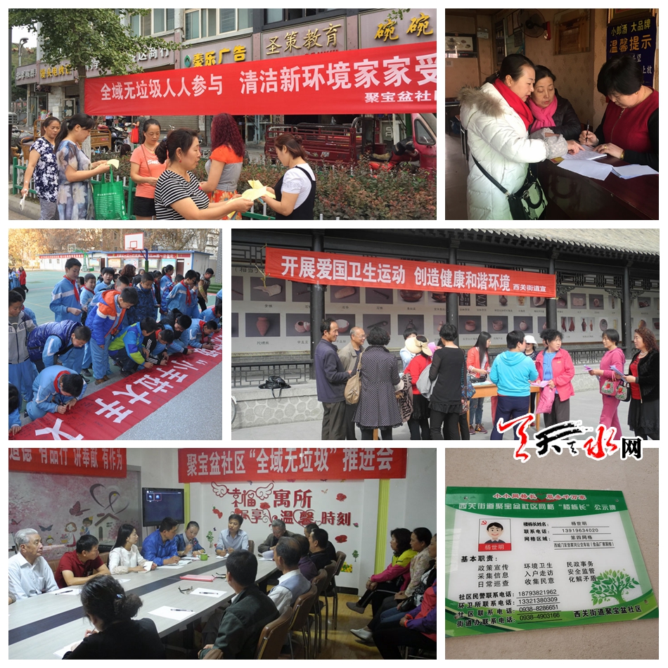 自從今年8月份“全域無垃圾”創(chuàng)建工作開展以來,西關(guān)街道聚寶盆社區(qū)把全域無垃圾創(chuàng)建工作納入社區(qū)主要工作范疇,召開創(chuàng)建動員大會和創(chuàng)建工作推進會,結(jié)合實際,制定了《聚寶盆社區(qū)全域無垃圾創(chuàng)建工作方案》,成立了全域無垃圾創(chuàng)建領(lǐng)導(dǎo)小組,與轄區(qū)內(nèi)行政事業(yè)單位和商業(yè)門店簽訂了《全域無垃圾創(chuàng)建工作責(zé)任書》和門前三包責(zé)任書,靠實相關(guān)責(zé)任單位、責(zé)任人員、責(zé)任區(qū)域、具體措施,各責(zé)任單位分工協(xié)作,轄區(qū)單位協(xié)調(diào)配合,為轄區(qū)全域無垃圾創(chuàng)建工作奠定了堅實有效的群眾基礎(chǔ)。