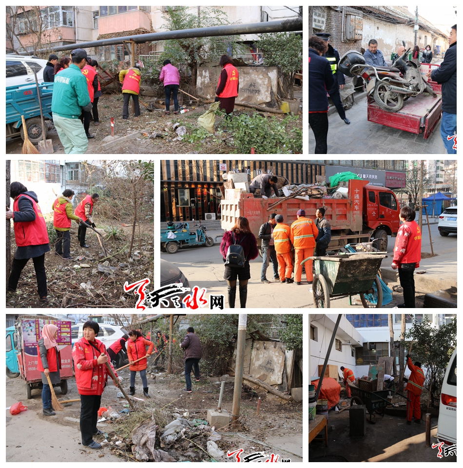 在創(chuàng)建工作前期宣傳動(dòng)員中,社區(qū)通過進(jìn)校園宣傳,在轄區(qū)新華門小學(xué)開展“全域無垃圾大手拉小手進(jìn)校園宣傳活動(dòng)”,號(hào)召全體學(xué)生愛護(hù)環(huán)境,從我做起,充分發(fā)揮小主人翁精神,并開展簽名承諾,發(fā)放倡議書、宣傳資料500多份,對(duì)校園周邊環(huán)境衛(wèi)生進(jìn)行了清理,以實(shí)際行動(dòng)踐行“清潔環(huán)保”活動(dòng),并積極倡議和號(hào)召家長(zhǎng)轉(zhuǎn)變觀念,主動(dòng)參與到家園清潔、美化和保護(hù)環(huán)境的行動(dòng)中來。為使全域無垃圾創(chuàng)建工作更加深入,社區(qū)根據(jù)干部責(zé)任片區(qū),深入居民樓落進(jìn)行宣傳,并及時(shí)對(duì)居民院落堆放的雜物進(jìn)行摸底。集中開展“三清”,聯(lián)系綜合執(zhí)法中城中隊(duì)人員,對(duì)轄區(qū)長(zhǎng)期停放的“僵尸車”,進(jìn)行了一次性清理,共清理“僵尸車”5輛。轄區(qū)因存在有三無小區(qū)和50多個(gè)居民平房院落,亂堆亂放一直是社區(qū)環(huán)境治理的薄弱點(diǎn),為徹底解決這一問題,12月對(duì)重新街三無小區(qū)進(jìn)行集中治理,社區(qū)先期發(fā)出公告,號(hào)召居民將有用雜物提前處理,在清理當(dāng)天,社區(qū)發(fā)動(dòng)100多居民,聯(lián)系環(huán)衛(wèi)處出動(dòng)車輛2輛,共清運(yùn)垃圾6車。發(fā)動(dòng)居民對(duì)轄區(qū)衛(wèi)生死角進(jìn)行清理,共清理死角垃圾5處。