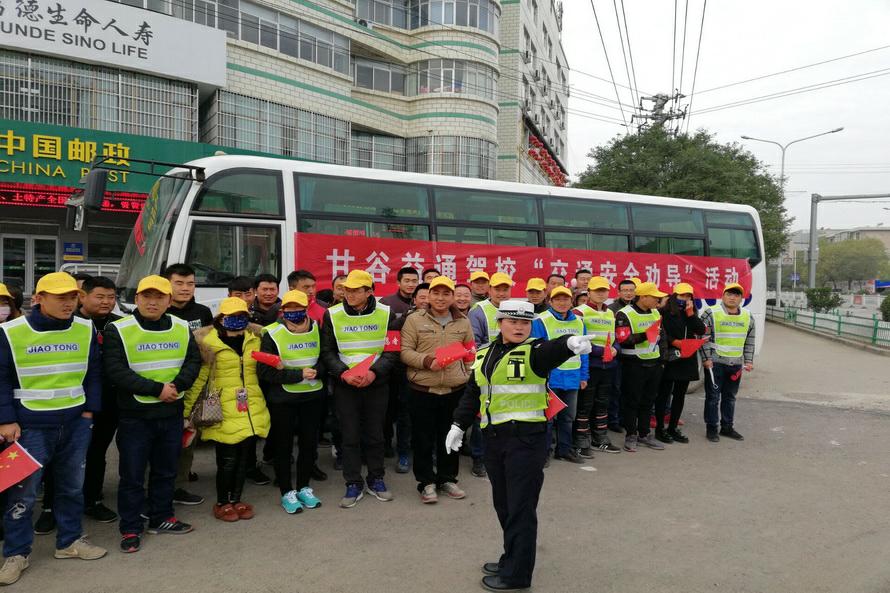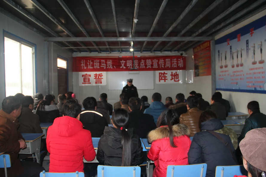 ????12月23日起,甘谷縣公安局交警大隊(duì)根據(jù)公安部、交通運(yùn)輸部《關(guān)于組織開展文明交通進(jìn)駕?!拔鍌€一”活動的通知》要求,以“禮讓斑馬線、文明我點(diǎn)贊”宣傳活動為契機(jī),在轄區(qū)駕校建立完善“交通安全教育警示基地”,通過觀看一部警示片、學(xué)習(xí)《道路交通安全法》、舉行宣誓儀式等活動,進(jìn)一步提升全縣交通安全宣傳教育工作,大力增強(qiáng)駕校學(xué)員交通安全意識、法治意識、文明意識,從源頭上預(yù)防和減少道路交通事故的發(fā)生。大隊(duì)組織各駕校“準(zhǔn)駕駛員”分批次組成交通志愿者隊(duì)伍,走上街頭,來到人流、車流密集的重點(diǎn)路段,對過往車輛、行人積極開展文明交通勸導(dǎo)活動。勸導(dǎo)廣大市民嚴(yán)格遵守交通安全法規(guī)、拋棄交通陋習(xí),勸導(dǎo)機(jī)動車駕駛?cè)硕Y讓斑馬線。