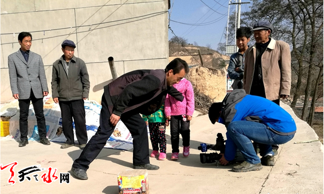 ????二〇一四年正月初五的上午,秦安縣劉坪鎮(zhèn)赤山村歡度春節(jié)文化表演活動(dòng)在鑼鼓聲中逐漸推向高潮。與往年一樣,村民用唱秦腔、扭秧歌、鳴炮、燃放煙花等方式表達(dá)著一年豐收的喜悅,歌頌著黨和政府給予農(nóng)村、農(nóng)民的溫暖關(guān)懷。