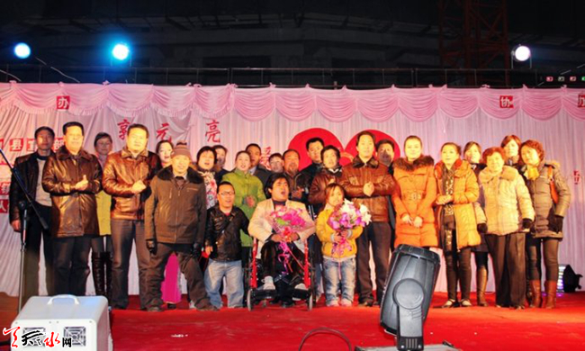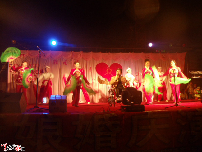 ????愛心藝術(shù)團現(xiàn)有殘疾演職人員7人,自成立以來參加演出十多場,慈善、義演4場,參加武山縣敬老院關(guān)愛老人慈善義演兩場,中國慈善法宣傳義演1場。在馬力鎮(zhèn)王溝村開展送文化下鄉(xiāng)活動,為群眾宣傳了黨的好政策,帶去了他們的豐富多彩的節(jié)目。2011年12月底,郭元亮愛心歌友演唱會在洛門鎮(zhèn)隆重上演,社會各界愛心人士2000多人觀看了演出。