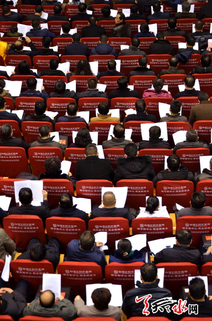 ????張明泰在講話中指出,2018年是全面貫徹落實中共十九大精神的開局之年,是改革開放40周年,也是決勝全面小康社會的關(guān)鍵一年。置身新時代,要有新作為。全市各級政協(xié)組織和全體政協(xié)委員要高舉中國特色社會主義偉大族織,堅持以習(xí)近平新時代中國特色社會主義思想為指導(dǎo),不忘初心,牢記使命,切實將市委、市政府的決策部署轉(zhuǎn)化為自覺行動,以更加堅定的信念,更加振奮的精神,更加務(wù)實的作風(fēng),展現(xiàn)新風(fēng)貌,實現(xiàn)新作為。要提高政治站位,牢固樹立政治意識、大局意識、核心意識、看齊意識,增強中國特色社會主義道路自信、理論自信、制度自信、文化自信,始終堅定正確的政治方向,堅決維護以習(xí)近平同志為核心的中共中央權(quán)威,堅決貫徹中共中央大政方針和中共甘肅省委、中共天水市委的各項決策部署,主動把黨的決策部署貫徹到政協(xié)工作的各方面,做到與市委、市政府同頻共振、同軸運轉(zhuǎn)、同向推進。要緊緊圍繞全市經(jīng)濟社會發(fā)展大局多建諍言、多獻良策,切實做到真誠協(xié)商、務(wù)實監(jiān)督、深入議政,推動全市經(jīng)濟社會又好又快發(fā)展,促進人民生活不斷改善。政協(xié)委員既是一種榮譽,更是一份責任。廣大政協(xié)委員要牢固樹立政協(xié)事業(yè)大有可為的堅定信心,增強人民政協(xié)大有作為的創(chuàng)新意識,倍加珍惜榮譽,倍加奮發(fā)有為,積極在工作崗位上建功立業(yè),在政協(xié)舞臺上展示風(fēng)采,定格人生奮斗坐標,留下生動政協(xié)故事,以新的業(yè)績?yōu)槿嗣裾f(xié)事業(yè)增光添彩。