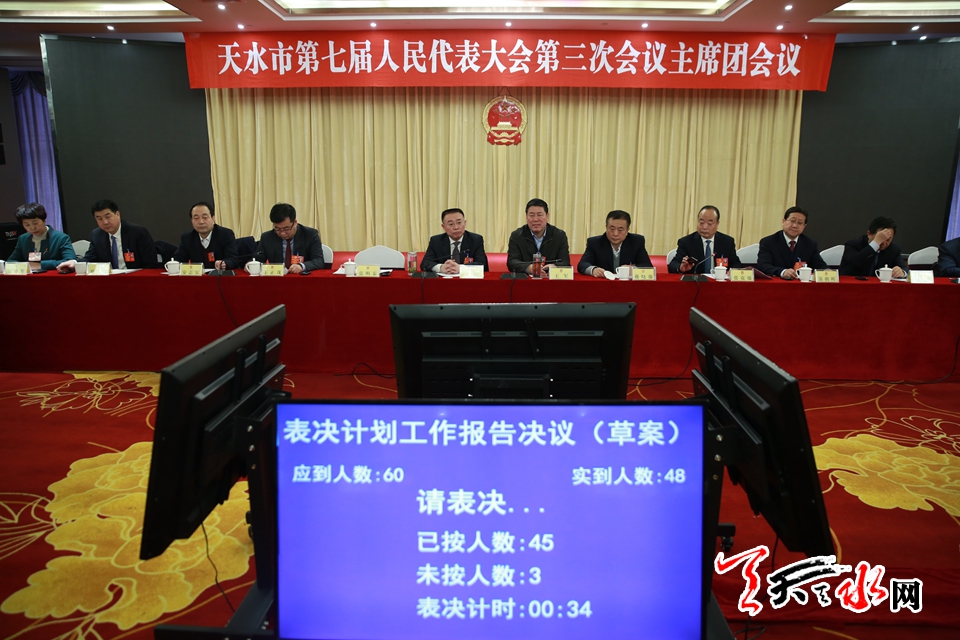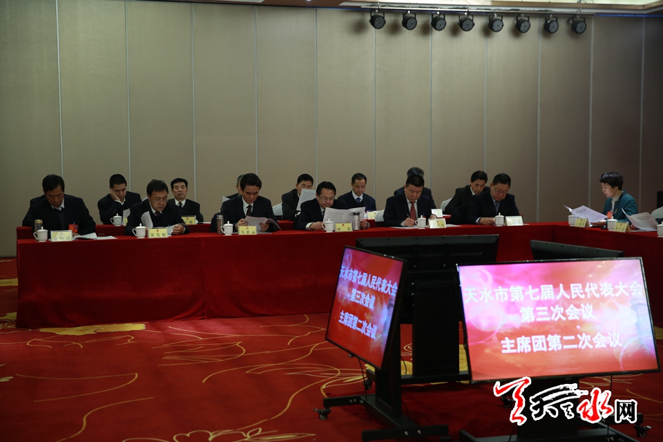 ????天天天水網(wǎng)訊【記者馬放 何永德】1月6日上午,天水市第七屆人民代表大會(huì)第三次會(huì)議主席團(tuán)舉行第二次會(huì)議。