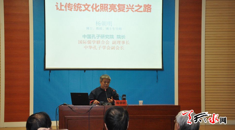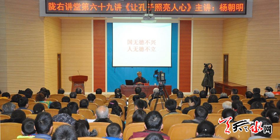 ???? 天天天水網(wǎng)訊【記者楊璟】1月14日上午,由市社科聯(lián)、天水孔子文化研究學(xué)院主辦的隴右講堂第69講在市圖書館開講,中國(guó)孔子研究院院長(zhǎng)、博士生導(dǎo)師楊朝明教授作了題為《讓孔子照亮人心》的學(xué)術(shù)講座。市人大常委會(huì)副主任安志宏主持講座。