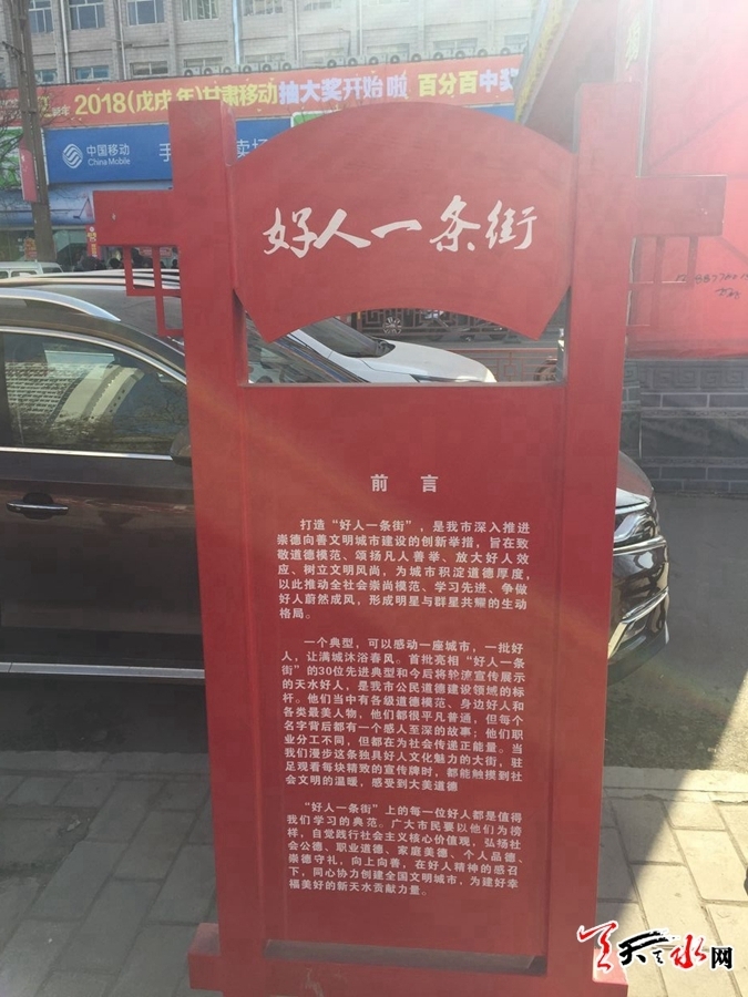 記者邊走、邊看、邊聽,每一塊“天水好人”宣傳牌前,或三五人,或十多個,或一小群,成了這條街的新景象。