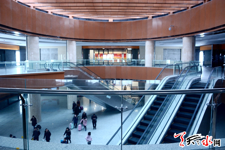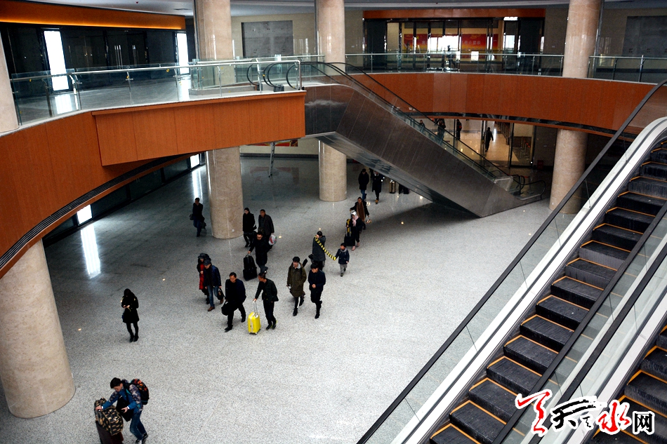 天天天水網(wǎng)訊【記者蔚軍平】1月16日,乘坐高鐵回到天水的旅客,從天水南站綜合交通樞紐一層的換乘服務(wù)大廳通過。2017年,天水南站綜合交通樞紐及站前廣場項目累計完成投資4.1億元,目前,施工人員正在加快施工進(jìn)度,力爭換乘服務(wù)大廳和站前廣場在春運前投入使用。