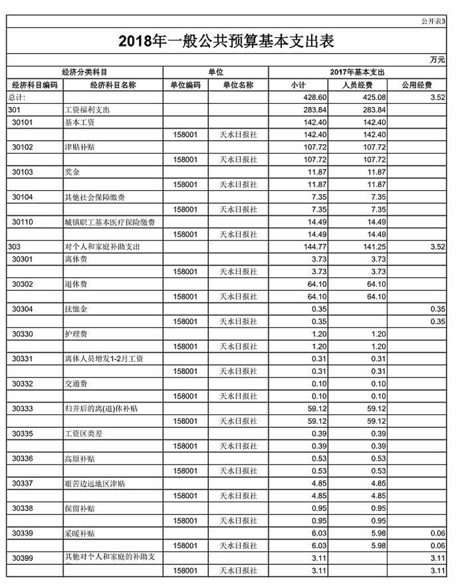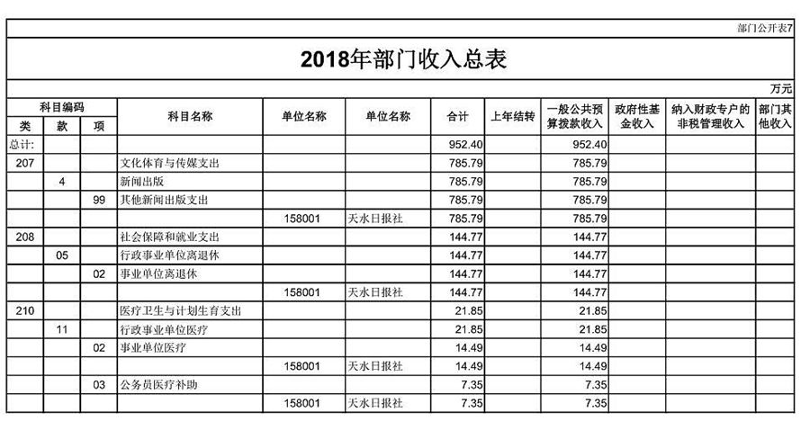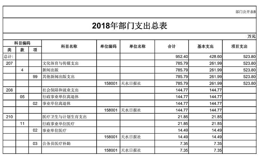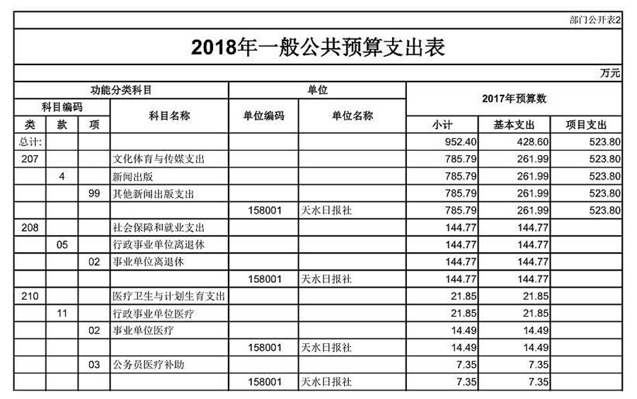 天水日報社2018年部門預(yù)算公開情況