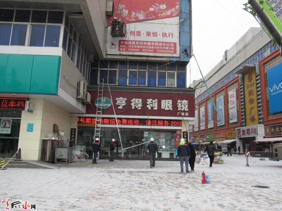 ????天天天水網(wǎng)訊(通訊員?趙懿)春節(jié)臨近,為了給全市人民創(chuàng)造安全、舒適、干凈、整潔的節(jié)日環(huán)境,1月30日,秦州區(qū)執(zhí)法局組織人員對龍城廣場周邊年久失修、破損、存在安全隱患的10余塊門頭廣告牌、商業(yè)廣告牌進行集中拆除。
