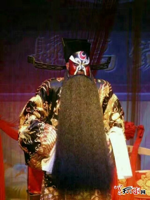 舞臺上這個包文拯的扮演者是天水市西秦腔研究院年輕花臉演員劉彥龍,他利用行內所說的“手、眼、身、法、步”把一個秉公持法、剛正不阿、鐵面無私、愛民如子的歷史傳奇人物演繹的栩栩如生,活靈活現。