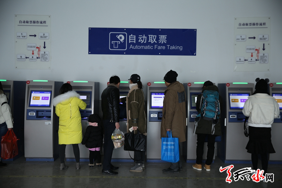 據(jù)了解,2018年春運(yùn)期間,天水車(chē)站預(yù)計(jì)發(fā)送旅客99.12萬(wàn)人,其中,天水南站預(yù)計(jì)發(fā)送旅客48萬(wàn)人,客流高峰日預(yù)計(jì)突破2萬(wàn)人。為此,天水車(chē)站計(jì)劃開(kāi)設(shè)售票窗口54個(gè),其中人工窗口18個(gè)、自動(dòng)售票機(jī)15臺(tái),自助取票機(jī)21臺(tái)。設(shè)置了務(wù)工人員售票專(zhuān)口,常旅客服務(wù)窗口和無(wú)障礙窗口,進(jìn)一步規(guī)范張貼“軍人依法優(yōu)先”標(biāo)識(shí),方便旅客購(gòu)買(mǎi)車(chē)票。對(duì)2臺(tái)紅色紙質(zhì)車(chē)票制票設(shè)備及時(shí)更新,逐步實(shí)現(xiàn)藍(lán)色磁介質(zhì)車(chē)票統(tǒng)一。在所有自動(dòng)售票機(jī)醒目位置張貼了支付寶、微信掃碼支付標(biāo)識(shí),最大限度方便旅客支付購(gòu)票,提高售票效率。