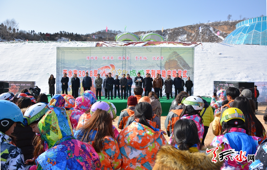 天天天水網(wǎng)訊【記者張彬霞】2月3日上午,由市文化和旅游局主辦的天水市2018年春節(jié)文化旅游系列活動(dòng)啟動(dòng)儀式在秦州區(qū)李官灣南山云端滑雪場舉行,此次系列活動(dòng)以滑冰雪、泡溫泉、逛廟會(huì)、賞民俗、過大年為主題,旨在依托我市豐富的旅游資源以及春節(jié)期間的民俗文化活動(dòng),進(jìn)一步促進(jìn)我市淡季旅游市場發(fā)展。