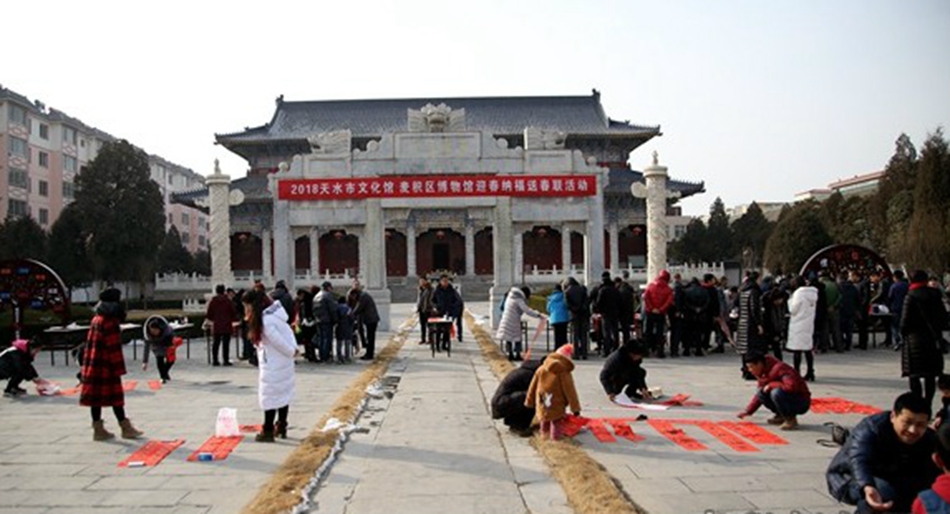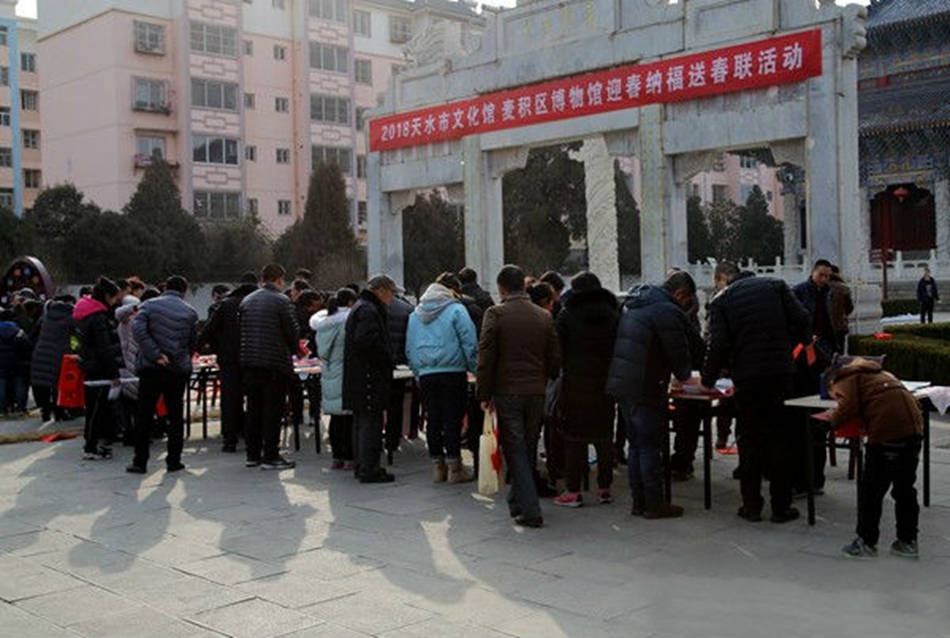 ????近日,天水市文化館與麥積區(qū)博物館共同組織著名書法家在麥積區(qū)博物館(龍園)開展“迎春納福”義務送春聯(lián)活動。