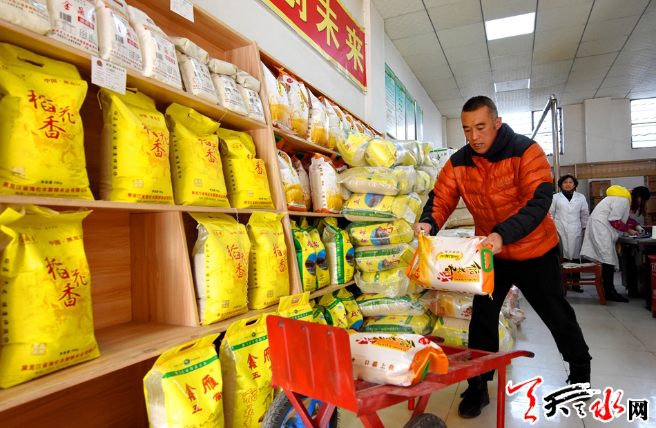 2月6日,市民在秦州區(qū)解放路放心糧油示范店購買大米。