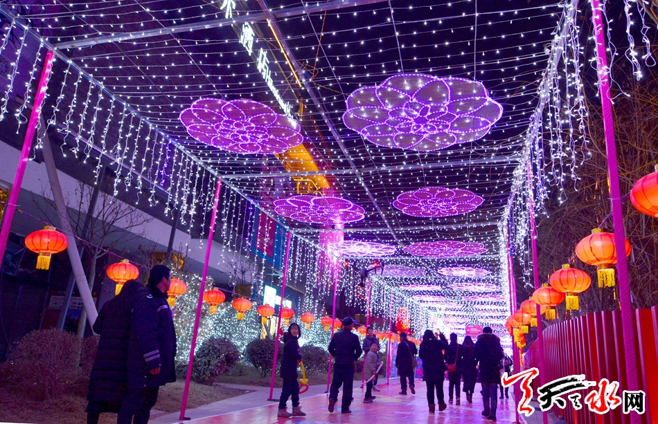 2月11日晚,市民觀賞2018天水首屆自貢大型主題燈展。