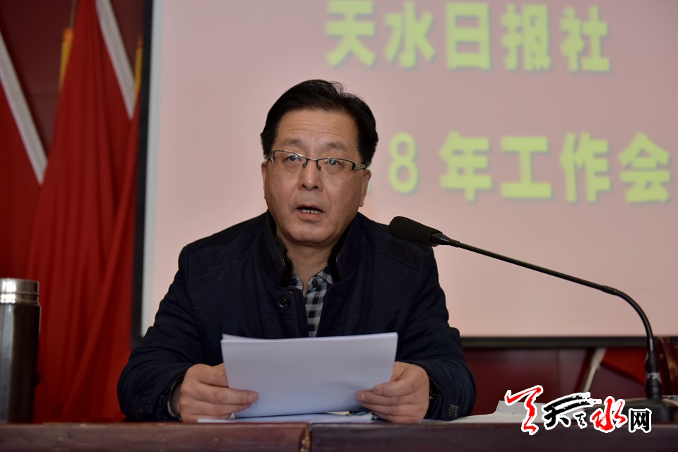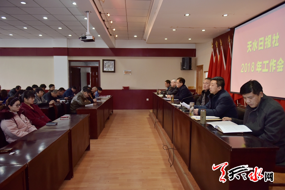 ????2018年,天水日報社將圍繞學(xué)習(xí)宣傳貫徹黨的十九大精神、十九屆二中全會精神和習(xí)近平新時代中國特色社會主義思想作為當(dāng)前首要政治任務(wù),不斷提升全體職工的思想自覺和行動自覺;加強意識形態(tài)工作,不斷提高輿論引導(dǎo)能力;圍繞中心,服務(wù)大局,做好新聞宣傳,全面提升各媒體新聞宣傳質(zhì)量,增強可讀性、時效性、權(quán)威性;加強人才隊伍建設(shè),提高新聞隊伍整體素質(zhì);推進傳統(tǒng)媒體和新媒體融合發(fā)展,加強新媒體平臺建設(shè)等工作任務(wù),全力推進報社的各項工作再上新臺階。