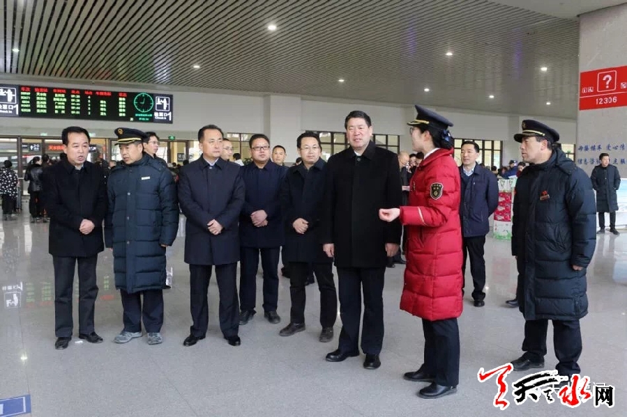 在天水高鐵南站和火車站新站房,王軍一行走進候車大廳、客服中心、安檢處、車站餐廳、特產超市,仔細察看春運服務和安全保障工作,并看望慰問一線干部職工和執(zhí)勤公安民警。