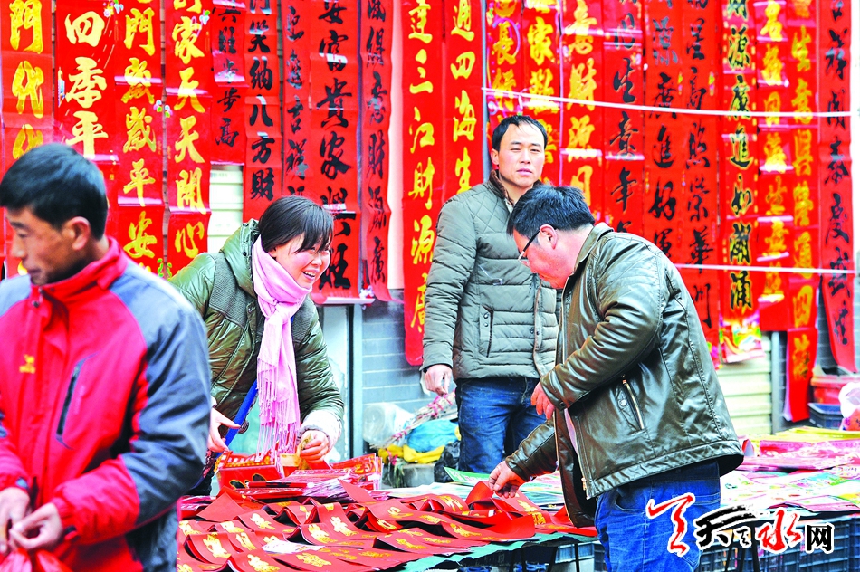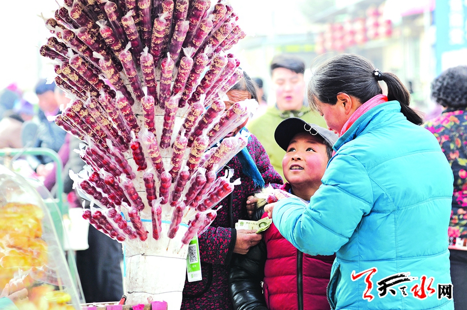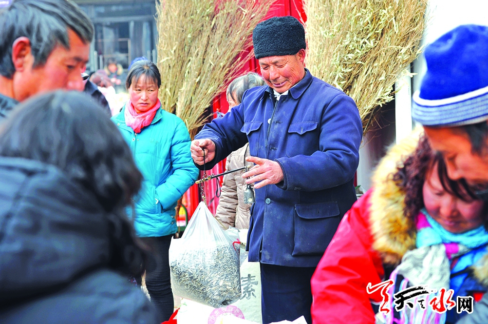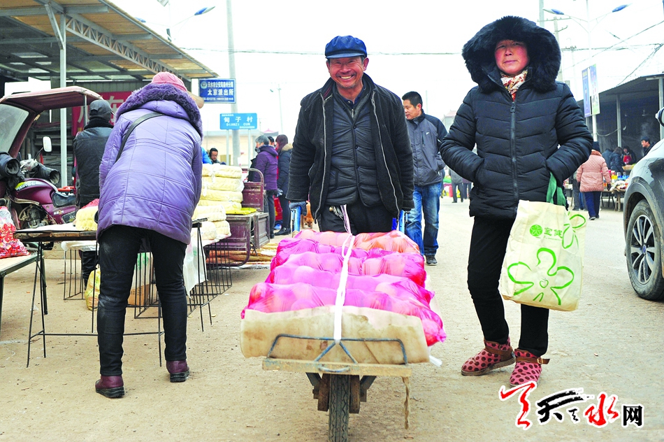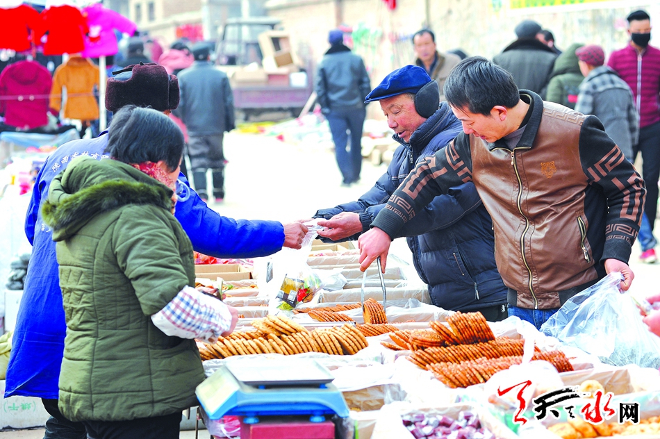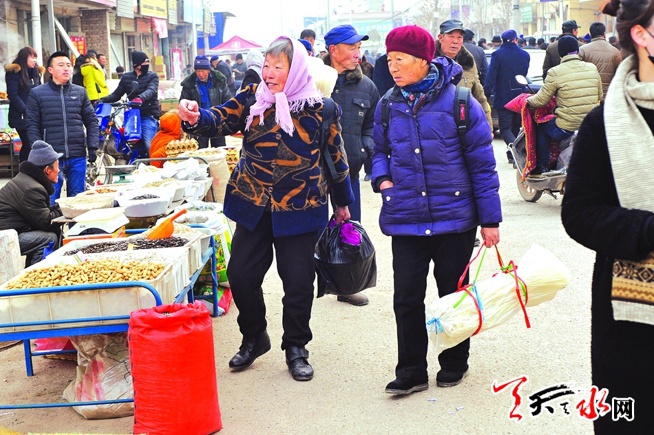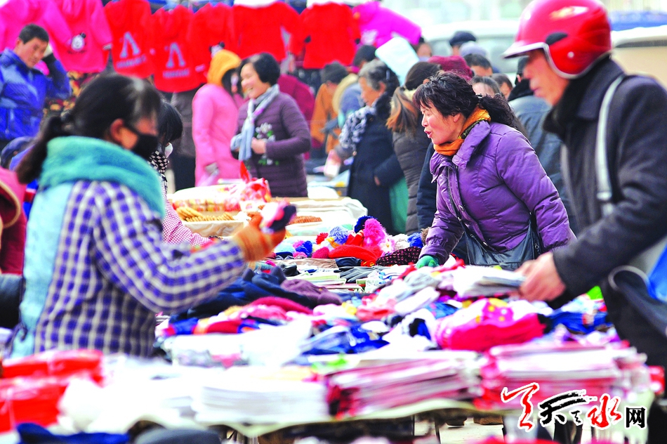 ??? 2月7日,農(nóng)歷臘月廿二,秦州區(qū)太京鎮(zhèn)逢集。春節(jié)將近,鄉(xiāng)村大集市紅火熱鬧,本地和周邊鄉(xiāng)鎮(zhèn)的鄉(xiāng)親們都聚集在這集市上,摩肩接踵,手提大包小包,鉚足了勁辦年貨。